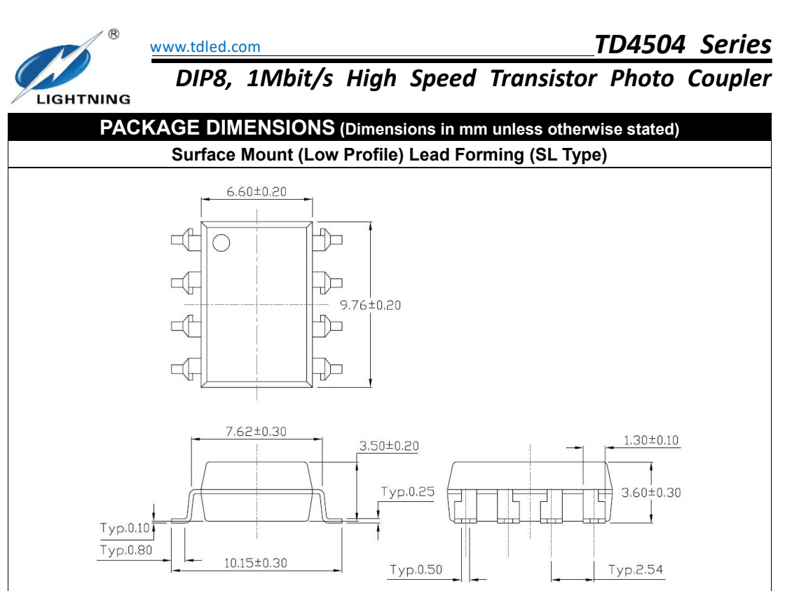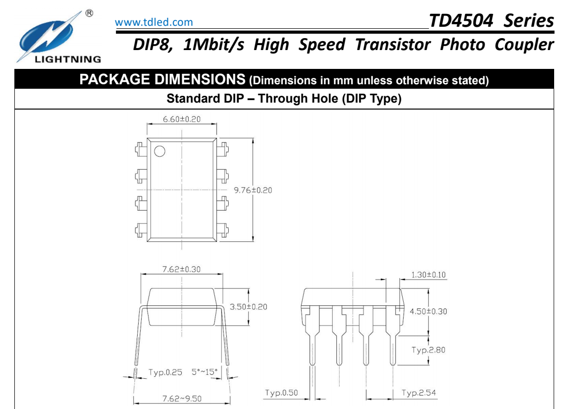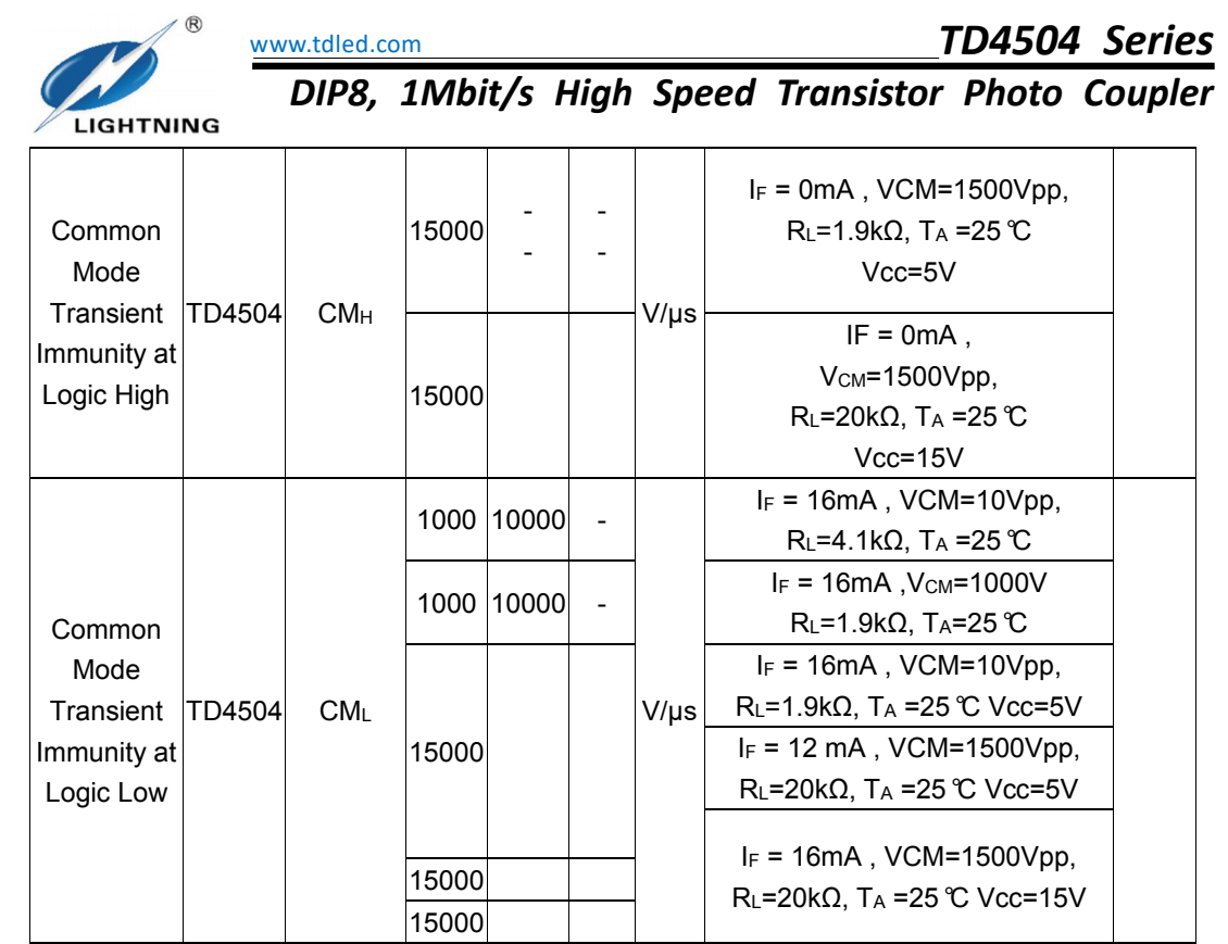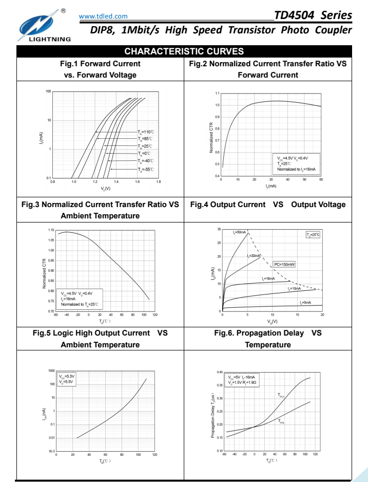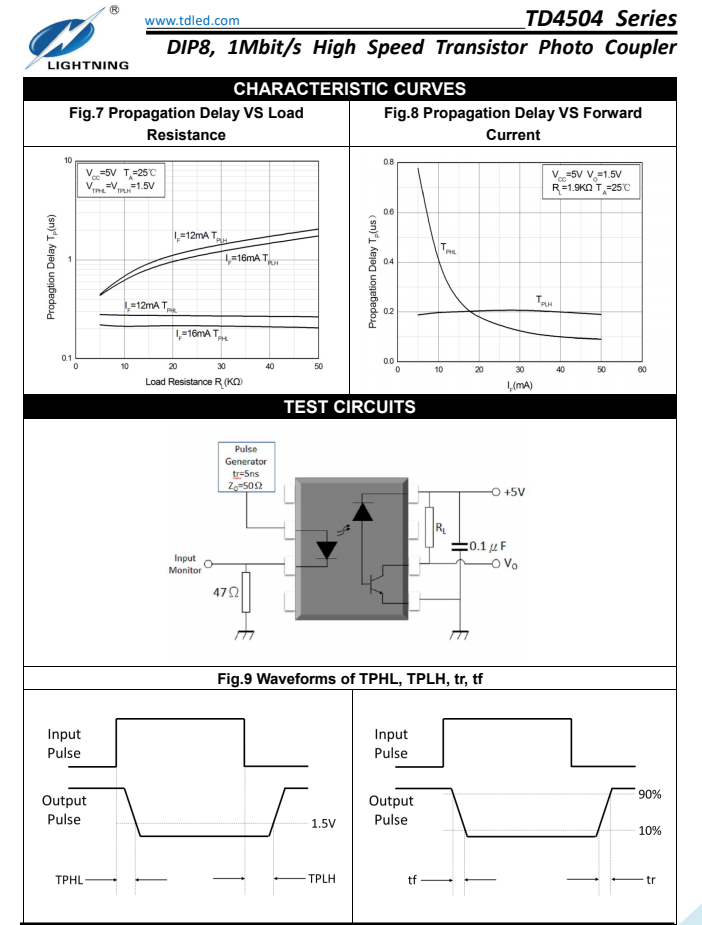 天電TD4504為8腳智能功率模塊接口光耦I(lǐng)PM,速率為1Mbit/s,輸入電流為25MA,輸出電壓Vcc為-0.5V-30V,耐壓為5000VRMS,體積為9.76*6.6*3.5MM,工作溫度:-55℃TO 100℃ 封裝的類型分為貼片SMD8和插件DIP8,在使用性能上能替代億光EL4054,安華高HCPL-4504,威世SFH6345,主要運用于線路接收機(jī),電信設(shè)備,CMOS-LSTL-TTL的輸出接口,寬帶模擬耦合脈沖變壓器更換,計算機(jī)外圍接口。