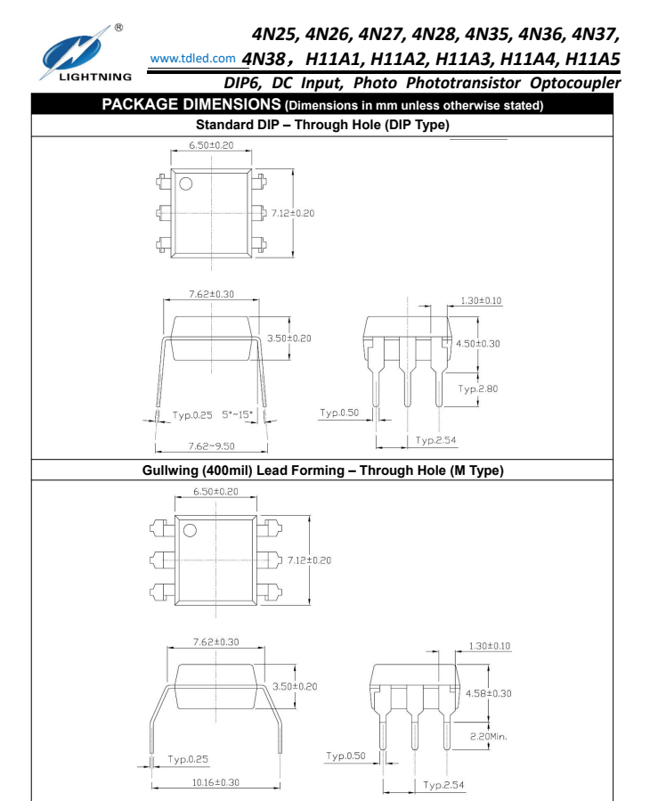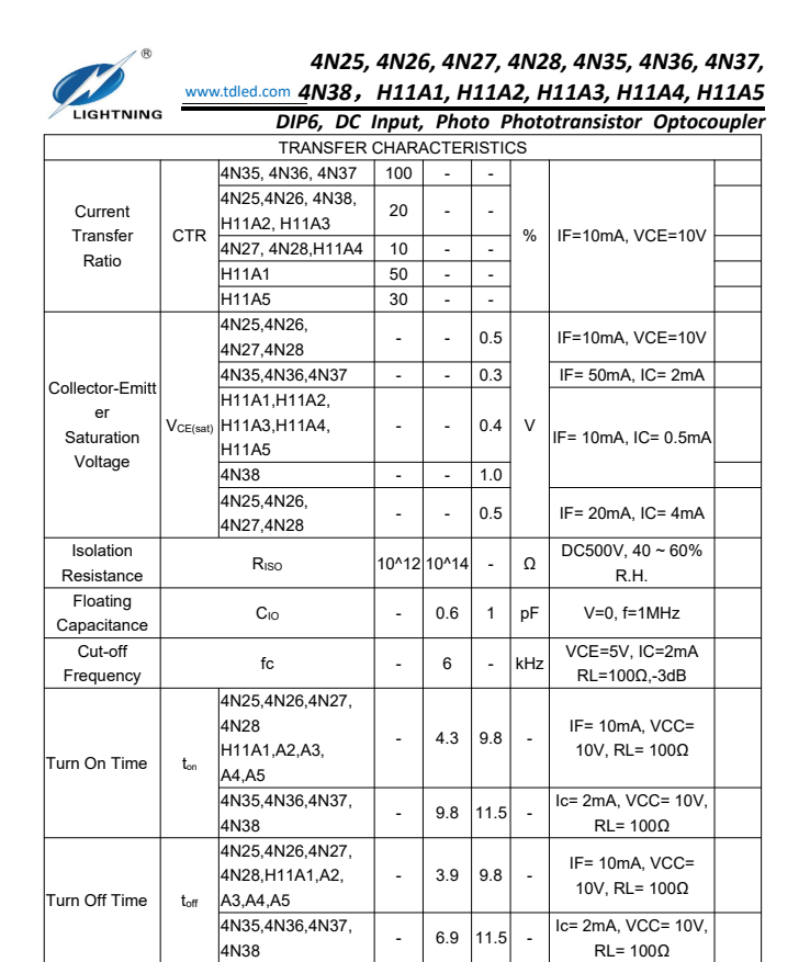 天電H11A1屬于六個腳三極管光耦,耐壓為5000VRMS,工作溫度:-55℃TO 110℃,輸入電流IF60MA,輸出電壓為80V,體積為7.12*6.5*3.5MM,封裝類型分為貼片SMD6和插件DIP6,CTR值為50%以上,可替代安森美ON H11A1,兆龍H11A1,光寶CNY17-2,主要應用于:電源調(diào)節(jié)器,數(shù)字邏輯輸入,微處理器輸入; 詳詢羅生:18925289962