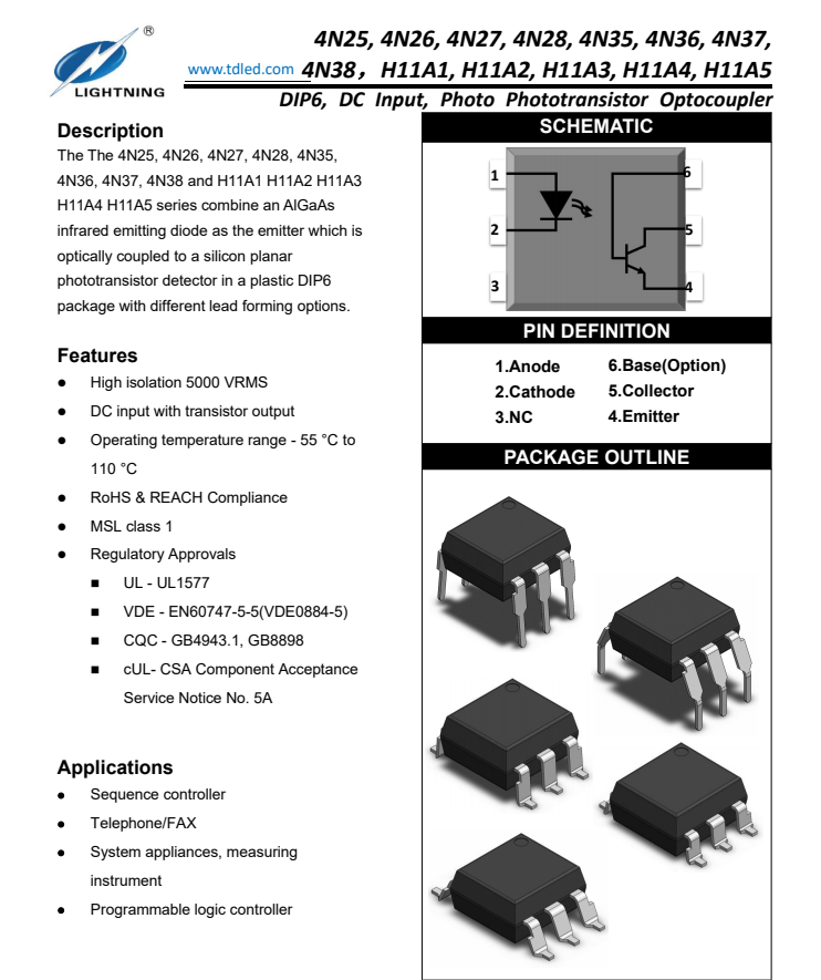 型號 :TD H11A1 規(guī)格 :顏色:黑色 腳型:SMD6/DIP6 材質(zhì):銅 應用范圍 :1,電源供應器 2,充電器 3,智能電表4,黑白家電5, 太陽能轉(zhuǎn)換6,電池管理系統(tǒng)7,工業(yè)控制8,調(diào)光器